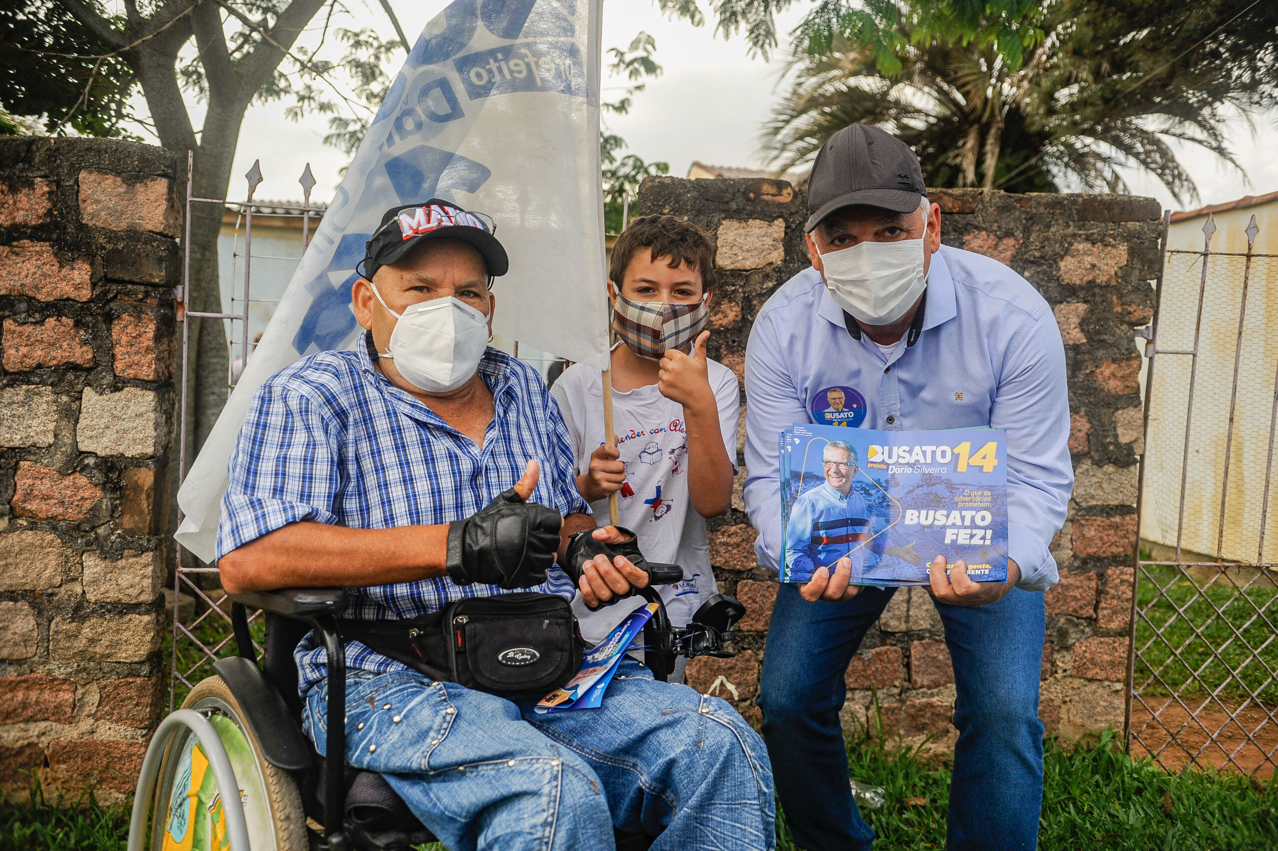 Com o objetivo de apresentar as propostas do plano de governo e reforçar a importância da continuidade da gestão em Canoas, Luiz Carlos Busato esteve no bairro Guajuviras na manhã desta terça-feira (13) ao lado de apoiadores. O ato iniciou por volta das 9h30 no Parque São José, localizado entre as ruas Professor Eusébio da Rocha e do Pontilhão, e contou com a participação de moradores e comerciantes da redondeza.