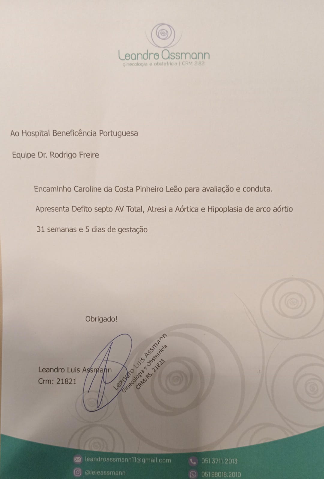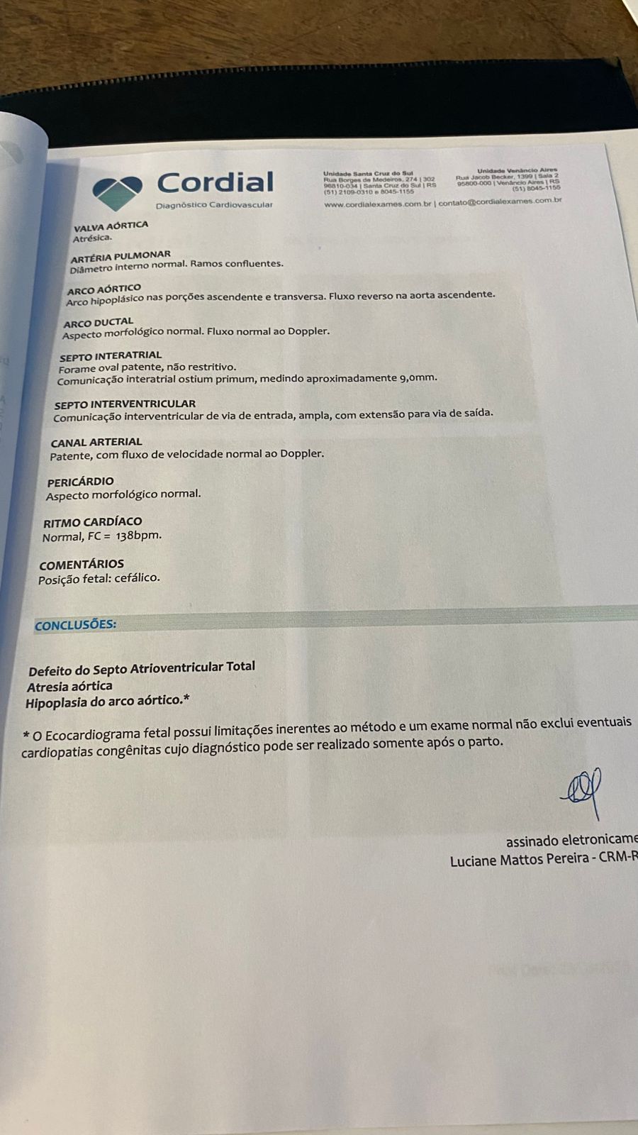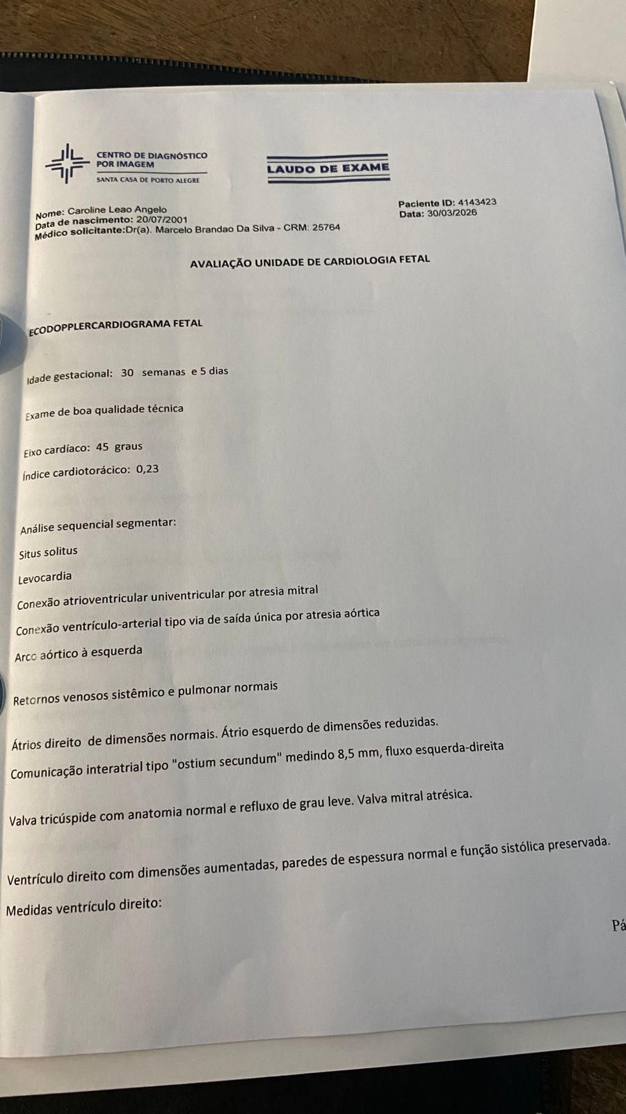 Com 29 semanas de gestação, durante um ecocardiograma fetal, veio o diagnóstico que mudaria tudo: o bebê do casal foi diagnosticado com Síndrome da Hipoplasia do Coração Esquerdo (SHCE), uma cardiopatia congênita grave em que o lado esquerdo do coração não se desenvolve adequadamente, comprometendo a circulação de sangue para o corpo.