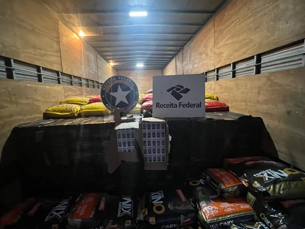 Um caminhão foi apreendido pela Receita Federal, na madrugada desta terça-feira (30), na BR-101, em Florianópolis, com quase 175 mil maços de cigarros. O motorista, que conduzia o material escondido em meio a uma carga de ração para cachorro, foi preso em flagrante.