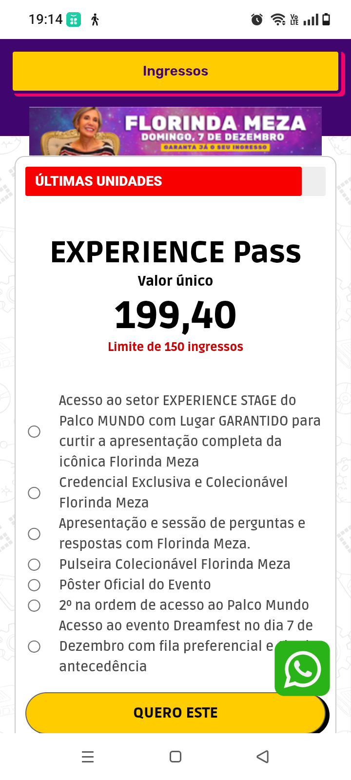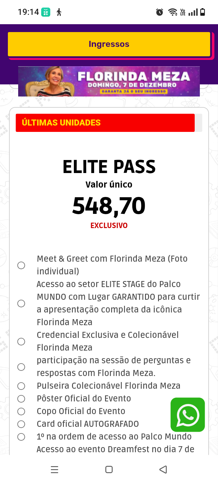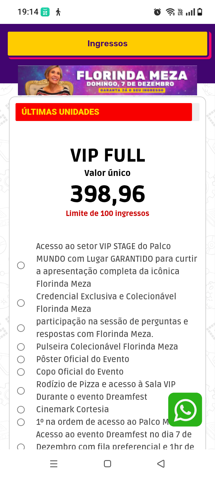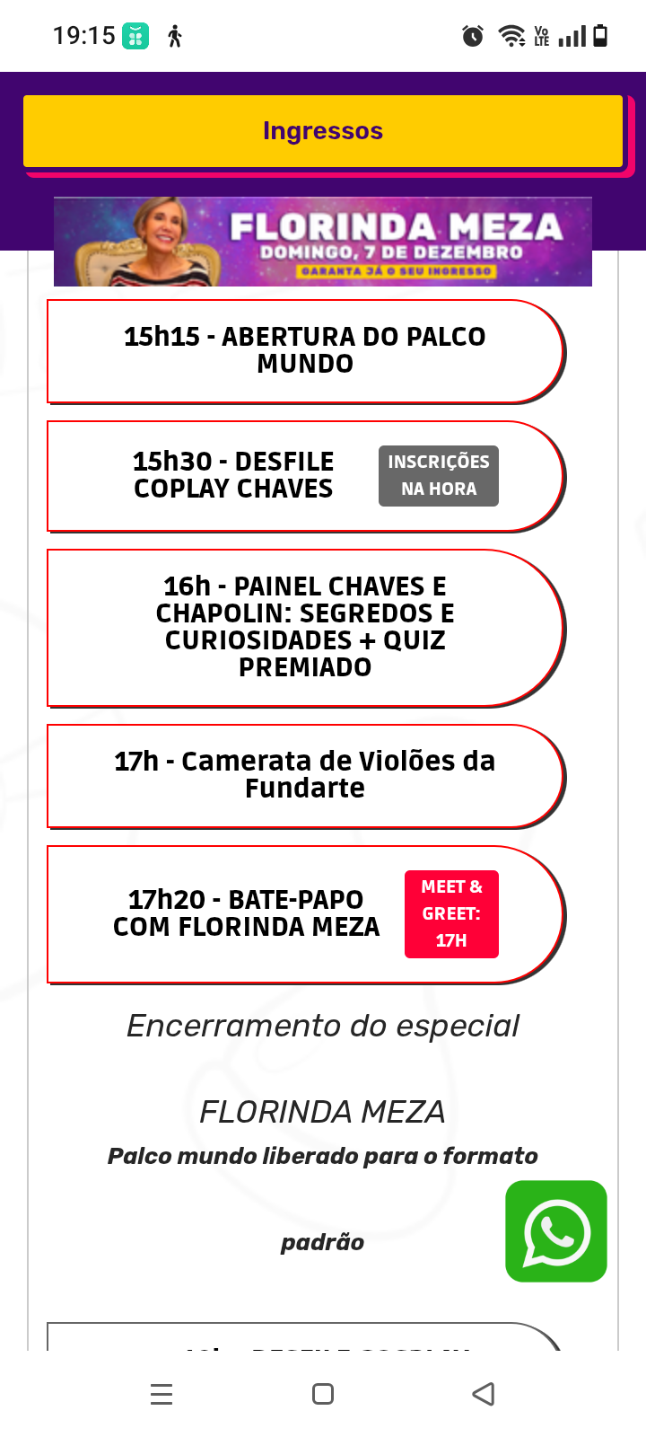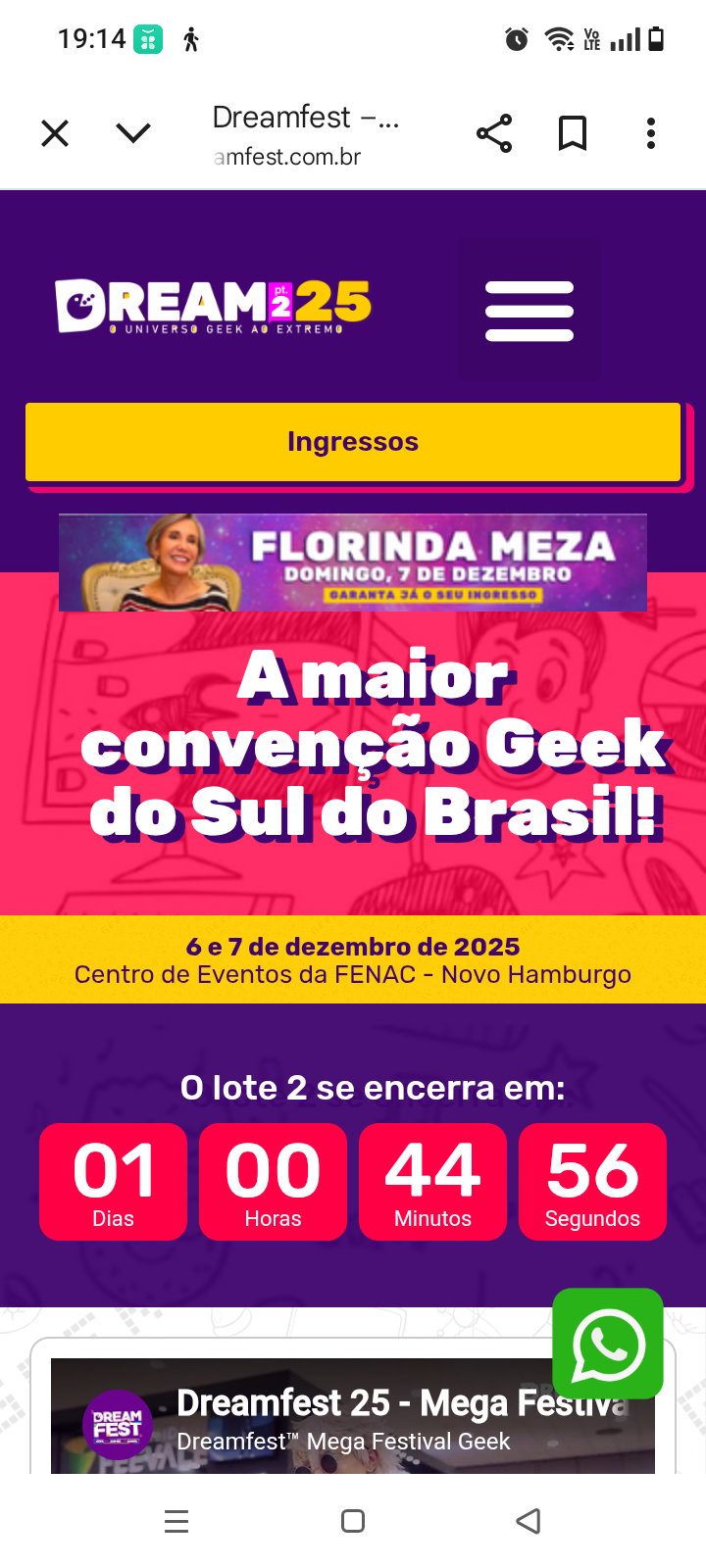 No cronograma oficial do Dream Fest deste domingo (7), a presença de Florinda Meza era um dos momentos mais esperados — especialmente por nós, do Sul, que jamais esqueceremos o apoio que ela deu ao estado durante a enchente. Mas, de forma inesperada e frustrante, o evento e a assessoria cancelaram hoje a vinda da artista.