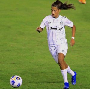 O Grêmio, no final do ano passado, se despediu de algumas atletas do futebol feminino, mas também renovou com algumas e entre elas está a atacante e artilheira do time em 2021, Laís Estevam.